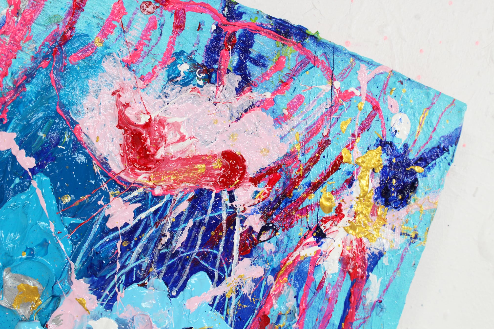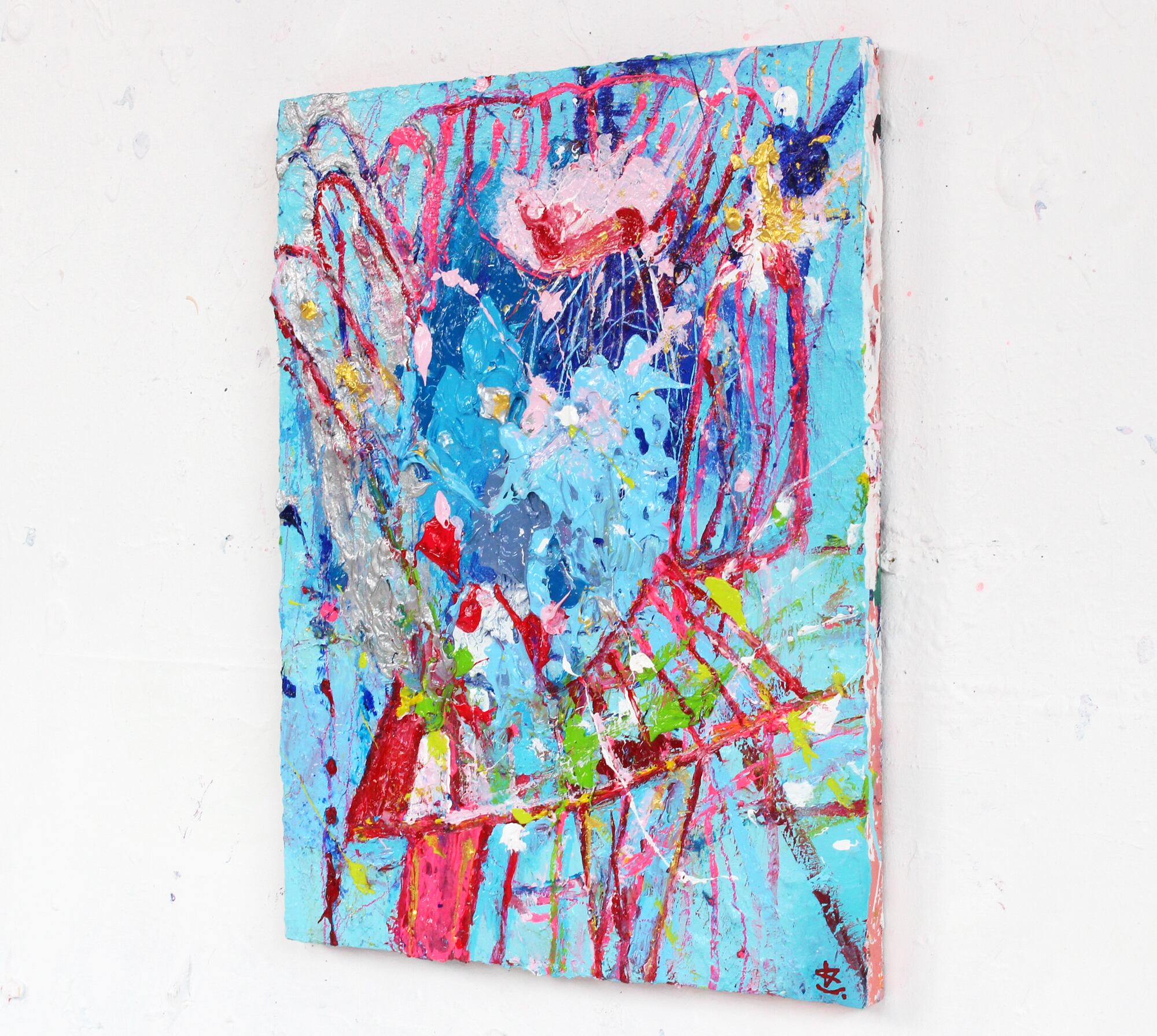 “A psyched girl” I'm feeding great Pushing my right hand up many times Shooting with water pistol by my left hand My favorite skirt is so good Exciting Exciting *A girl with pigtails /acrylic,oilpastel,colorpencil,panel/31.8×41.0㎝/2020 No frame 『ブチアゲガール』 気分は最高にブチアガってる 右手を何度も突き上げ 左手で水鉄砲を打つ お気に入りのスカートもキマッてる 最高、最高 仕様:アクリル絵の具、オイルパステル、色鉛筆、木製パネル サイズ:31.8×41.0㎝(F6号) 額無し 制作年:2020年 ツインテールでスカートを履いた女の子になっている作品。 ------------------------------------------- 植松京子が2020年に制作した絵画です。 原画は一点ものとなっております。 裏面にタイトル、制作年、本人サインあり。 壁に画鋲を刺して、引っ掛けるだけでお部屋に飾れます。 (もっと頑丈にしたい方は、壁に釘打ちをして、 作品の裏両脇にネジで紐を張り、引っ掛けて飾ってください) ------------------------------------------- 【芸術家 植松 京子】 HP: https://kyokouematsu.wixsite.com/artwork Instagram:https://www.instagram.com/kyoko_uematsu_art/ ■作品について 何も計画せず、下描きもせず、キャンバスの前に立つ。 内のエネルギーをものすごく高い状態にする。 ある瞬間から一気に体が動き始める。 次から次へと色が乗っていく。 キャンバス上で絵の具たちが、 目まぐるしくぶつかり、跳ね、飛び散り、流れ、混ざり、消え、削られ、また重なっていく。 途中、目や耳、手や足など、動物に似た生命体の一部を見出す。 そこからは、意識的な動きも加わり、 産まれ出た主役の個性、固有のパワーや可能性が、 最大限に発されるよう、 守りながら、生み出していく。 納得できる姿になったら手を止め、そして改めて対話をする。 この子は何をしているのか。 何を言わんとしてるのか。 どんな心を持っているのか。 それを読み解いてタイトルをつけ、完成とする。 私の絵には、動物ばかりが出てきて、人間は出てこない。 これは、 現代社会において、人間たちが見失いがちな、 「たった“1”の命が持つ可能性、エネルギー」を 純粋な動物たちが、人間に向かって見せてくれている、と捉えている。 この絵を見ている、あなた自身にもこれだけの可能性やエネルギーがあるんだと。 (人間の少女のみたまに出てくるが、これはピュアの象徴として解釈している) いつ何が起こるかわからないこの世の中で、 自分1人、だれか1人、という“1”の力を、純粋な生命力を、信じて 諦めないで生きていきたい。 植松京子