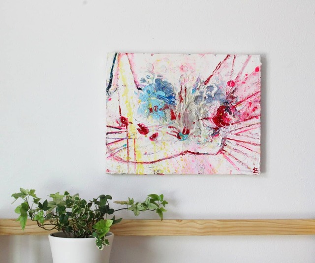 “Saw an amazing thing” I met an amazing thing With this eye I saw it certainly *A face of cat /acrylic,oilpastel,canvas/31.8×41.0㎝/2020 No frame 『すごいものに出会った』 すごいものに出会った この目でしっかり 見てしまった 仕様:アクリル絵の具、オイルパステル、キャンバス サイズ:31.8×41.0㎝(F6号) 額無し 制作年:2020年 猫の顔になっている作品。 ------------------------------------------- 植松京子が2020年に制作した絵画です。 原画は一点ものとなっております。 裏面にタイトル、制作年、本人サインあり。 壁に画鋲を刺して、引っ掛けるだけでお部屋に飾れます。 (もっと頑丈にしたい方は、壁に釘打ちをして、 作品の裏両脇にネジで紐を張り、引っ掛けて飾ってください) ------------------------------------------- 【芸術家 植松 京子】 HP: https://kyokouematsu.wixsite.com/artwork Instagram:https://www.instagram.com/kyoko_uematsu_art/ ■作品について 何も計画せず、下描きもせず、キャンバスの前に立つ。 内のエネルギーをものすごく高い状態にする。 ある瞬間から一気に体が動き始める。 次から次へと色が乗っていく。 キャンバス上で絵の具たちが、 目まぐるしくぶつかり、跳ね、飛び散り、流れ、混ざり、消え、削られ、また重なっていく。 途中、目や耳、手や足など、動物に似た生命体の一部を見出す。 そこからは、意識的な動きも加わり、 産まれ出た主役の個性、固有のパワーや可能性が、 最大限に発されるよう、 守りながら、生み出していく。 納得できる姿になったら手を止め、そして改めて対話をする。 この子は何をしているのか。 何を言わんとしてるのか。 どんな心を持っているのか。 それを読み解いてタイトルをつけ、完成とする。 私の絵には、動物ばかりが出てきて、人間は出てこない。 これは、 現代社会において、人間たちが見失いがちな、 「たった“1”の命が持つ可能性、エネルギー」を 純粋な動物たちが、人間に向かって見せてくれている、と捉えている。 この絵を見ている、あなた自身にもこれだけの可能性やエネルギーがあるんだと。 (人間の少女のみたまに出てくるが、これはピュアの象徴として解釈している) いつ何が起こるかわからないこの世の中で、 自分1人、だれか1人、という“1”の力を、純粋な生命力を、信じて 諦めないで生きていきたい。 植松京子