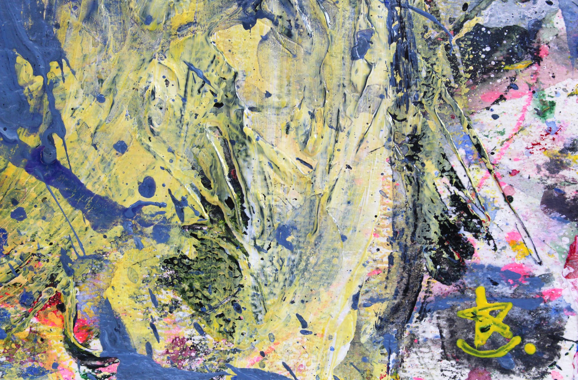 『やぁ』 仕様:アクリル絵の具、オイルパステル、色鉛筆、紙 サイズ:25.8×36.3㎝ 額無し 制作年:2019年 クマになっている作品。 “Hi” acrylic,oilpastel,colored pencil,paper *A bear ------------------------------------------- 植松京子が2020年に制作した絵画です。 原画は一点ものとなっております。 裏面にタイトル、制作年、本人サインあり。 ------------------------------------------- 【芸術家 植松 京子】 HP: https://kyokouematsu.wixsite.com/artwork Instagram:https://www.instagram.com/kyoko_uematsu_art/ ■作品について 何も計画せず、下描きもせず、キャンバスの前に立つ。 内のエネルギーをものすごく高い状態にする。 ある瞬間から一気に体が動き始める。 次から次へと色が乗っていく。 キャンバス上で絵の具たちが、 目まぐるしくぶつかり、跳ね、飛び散り、流れ、混ざり、消え、削られ、また重なっていく。 途中、目や耳、手や足など、動物に似た生命体の一部を見出す。 そこからは、意識的な動きも加わり、 産まれ出た主役の個性、固有のパワーや可能性が、 最大限に発されるよう、 守りながら、生み出していく。 納得できる姿になったら手を止め、そして改めて対話をする。 この子は何をしているのか。 何を言わんとしてるのか。 どんな心を持っているのか。 それを読み解いてタイトルをつけ、完成とする。 私の絵には、動物ばかりが出てきて、人間は出てこない。 これは、 現代社会において、人間たちが見失いがちな、 「たった“1”の命が持つ可能性、エネルギー」を 純粋な動物たちが、人間に向かって見せてくれている、と捉えている。 この絵を見ている、あなた自身にもこれだけの可能性やエネルギーがあるんだと。 (人間の少女のみたまに出てくるが、これはピュアの象徴として解釈している) いつ何が起こるかわからないこの世の中で、 自分1人、だれか1人、という“1”の力を、純粋な生命力を、信じて 諦めないで生きていきたい。 植松京子
