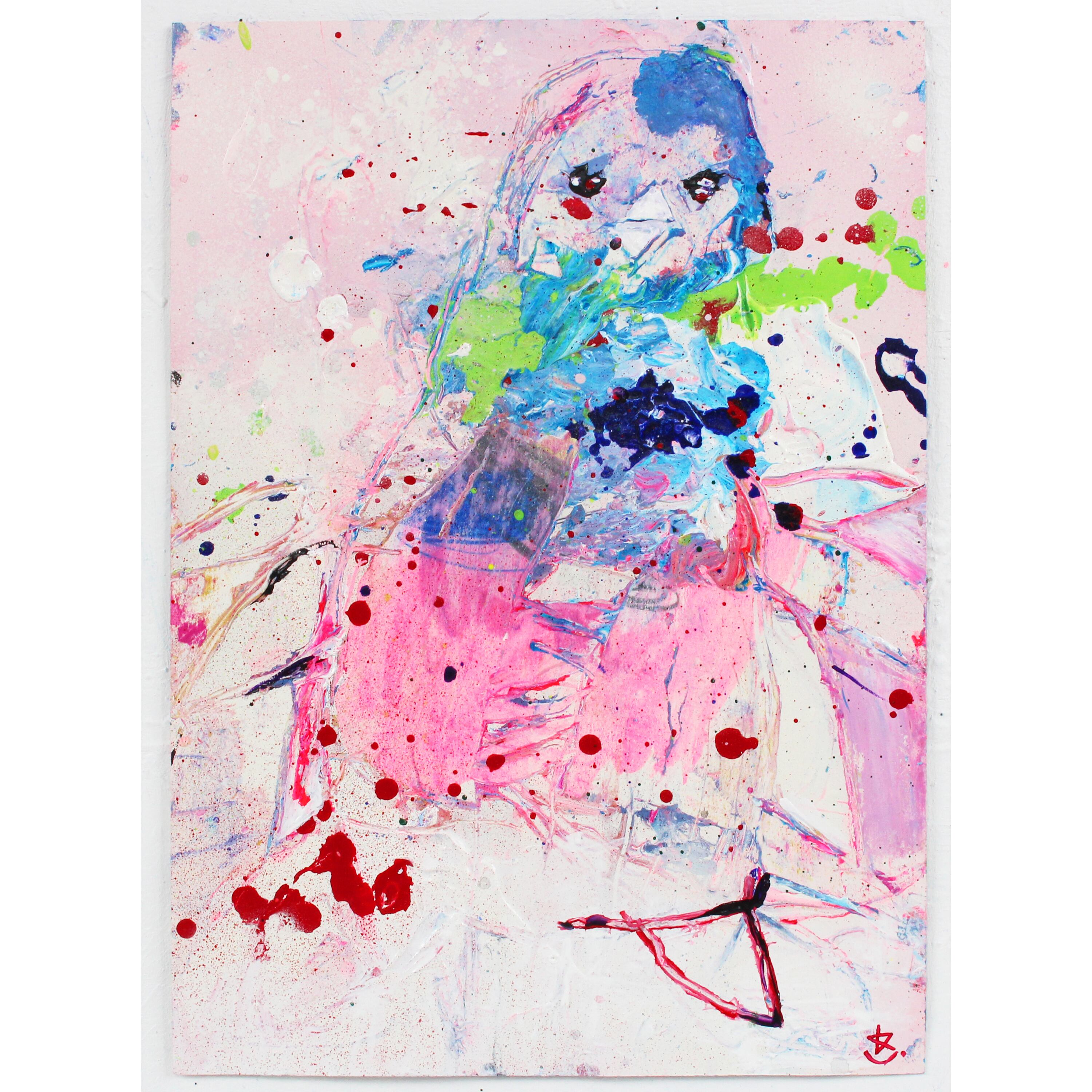 『あたたかい場所でパタパタ』 仕様:アクリル絵の具、色鉛筆、紙 サイズ:37.9×27.2㎝ 額無し 制作年:2020年 ペンギンになっている作品。 “Dancing hands in a warm place” acrylic,colored pencil,paper *A penguin ------------------------------------------- 植松京子が2020年に制作した絵画です。 原画は一点ものとなっております。 裏面にタイトル、制作年、本人サインあり。 ------------------------------------------- 【芸術家 植松 京子】 HP: https://kyokouematsu.wixsite.com/artwork Instagram:https://www.instagram.com/kyoko_uematsu_art/ ■作品について 何も計画せず、下描きもせず、キャンバスの前に立つ。 内のエネルギーをものすごく高い状態にする。 ある瞬間から一気に体が動き始める。 次から次へと色が乗っていく。 キャンバス上で絵の具たちが、 目まぐるしくぶつかり、跳ね、飛び散り、流れ、混ざり、消え、削られ、また重なっていく。 途中、目や耳、手や足など、動物に似た生命体の一部を見出す。 そこからは、意識的な動きも加わり、 産まれ出た主役の個性、固有のパワーや可能性が、 最大限に発されるよう、 守りながら、生み出していく。 納得できる姿になったら手を止め、そして改めて対話をする。 この子は何をしているのか。 何を言わんとしてるのか。 どんな心を持っているのか。 それを読み解いてタイトルをつけ、完成とする。 私の絵には、動物ばかりが出てきて、人間は出てこない。 これは、 現代社会において、人間たちが見失いがちな、 「たった“1”の命が持つ可能性、エネルギー」を 純粋な動物たちが、人間に向かって見せてくれている、と捉えている。 この絵を見ている、あなた自身にもこれだけの可能性やエネルギーがあるんだと。 (人間の少女のみたまに出てくるが、これはピュアの象徴として解釈している) いつ何が起こるかわからないこの世の中で、 自分1人、だれか1人、という“1”の力を、純粋な生命力を、信じて 諦めないで生きていきたい。 植松京子