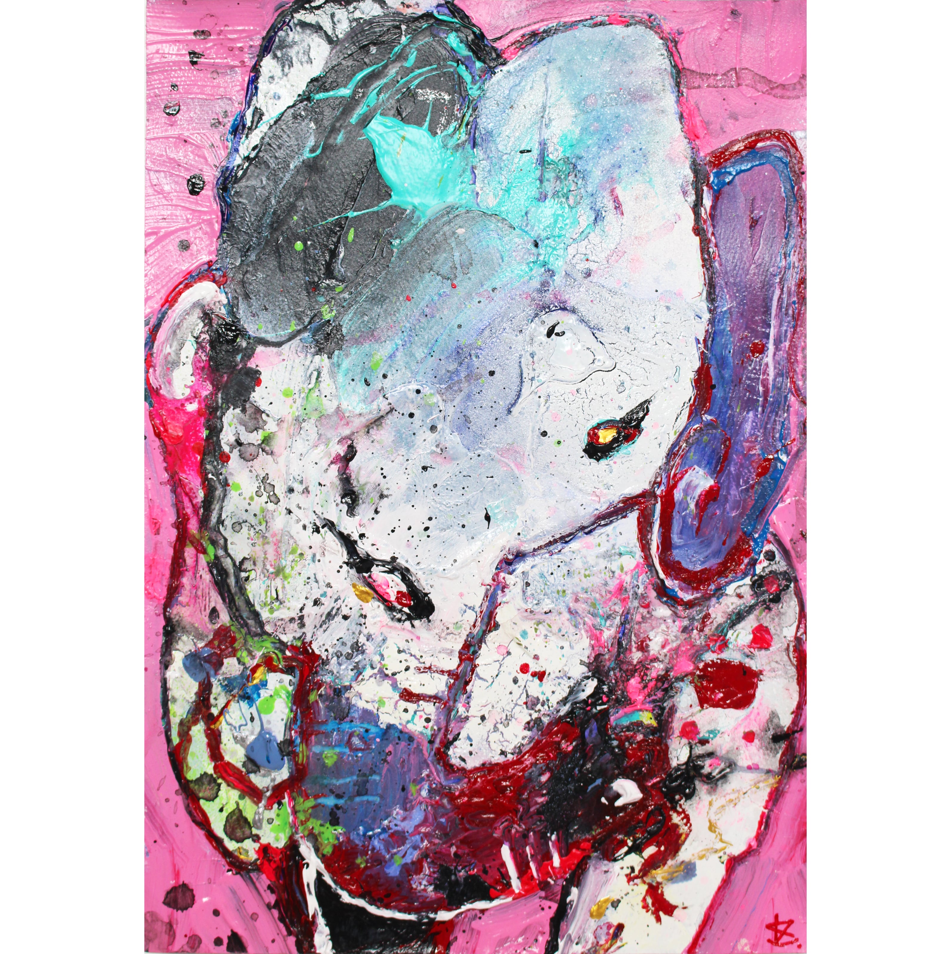 “I look for it even in the mud” acrylic,oilpastel,paper/27.5×39.5㎝/2020 *An elephant *No frame 『泥の中からでも探す』 仕様:アクリル絵の具、オイルパステル、紙 サイズ:27.5×39.5㎝ 額無し 制作年:2020年 象になっている作品。 ------------------------------------------- 植松京子が2020年に制作した絵画です。 原画は一点ものとなっております。 裏面にタイトル、制作年、本人サインあり。 ------------------------------------------- 【芸術家 植松 京子】 HP: https://kyokouematsu.wixsite.com/artwork Instagram:https://www.instagram.com/kyoko_uematsu_art/ ■作品について 何も計画せず、下描きもせず、キャンバスの前に立つ。 内のエネルギーをものすごく高い状態にする。 ある瞬間から一気に体が動き始める。 次から次へと色が乗っていく。 キャンバス上で絵の具たちが、 目まぐるしくぶつかり、跳ね、飛び散り、流れ、混ざり、消え、削られ、また重なっていく。 途中、目や耳、手や足など、動物に似た生命体の一部を見出す。 そこからは、意識的な動きも加わり、 産まれ出た主役の個性、固有のパワーや可能性が、 最大限に発されるよう、 守りながら、生み出していく。 納得できる姿になったら手を止め、そして改めて対話をする。 この子は何をしているのか。 何を言わんとしてるのか。 どんな心を持っているのか。 それを読み解いてタイトルをつけ、完成とする。 私の絵には、動物ばかりが出てきて、人間は出てこない。 これは、 現代社会において、人間たちが見失いがちな、 「たった“1”の命が持つ可能性、エネルギー」を 純粋な動物たちが、人間に向かって見せてくれている、と捉えている。 この絵を見ている、あなた自身にもこれだけの可能性やエネルギーがあるんだと。 (人間の少女のみたまに出てくるが、これはピュアの象徴として解釈している) いつ何が起こるかわからないこの世の中で、 自分1人、だれか1人、という“1”の力を、純粋な生命力を、信じて 諦めないで生きていきたい。 植松京子