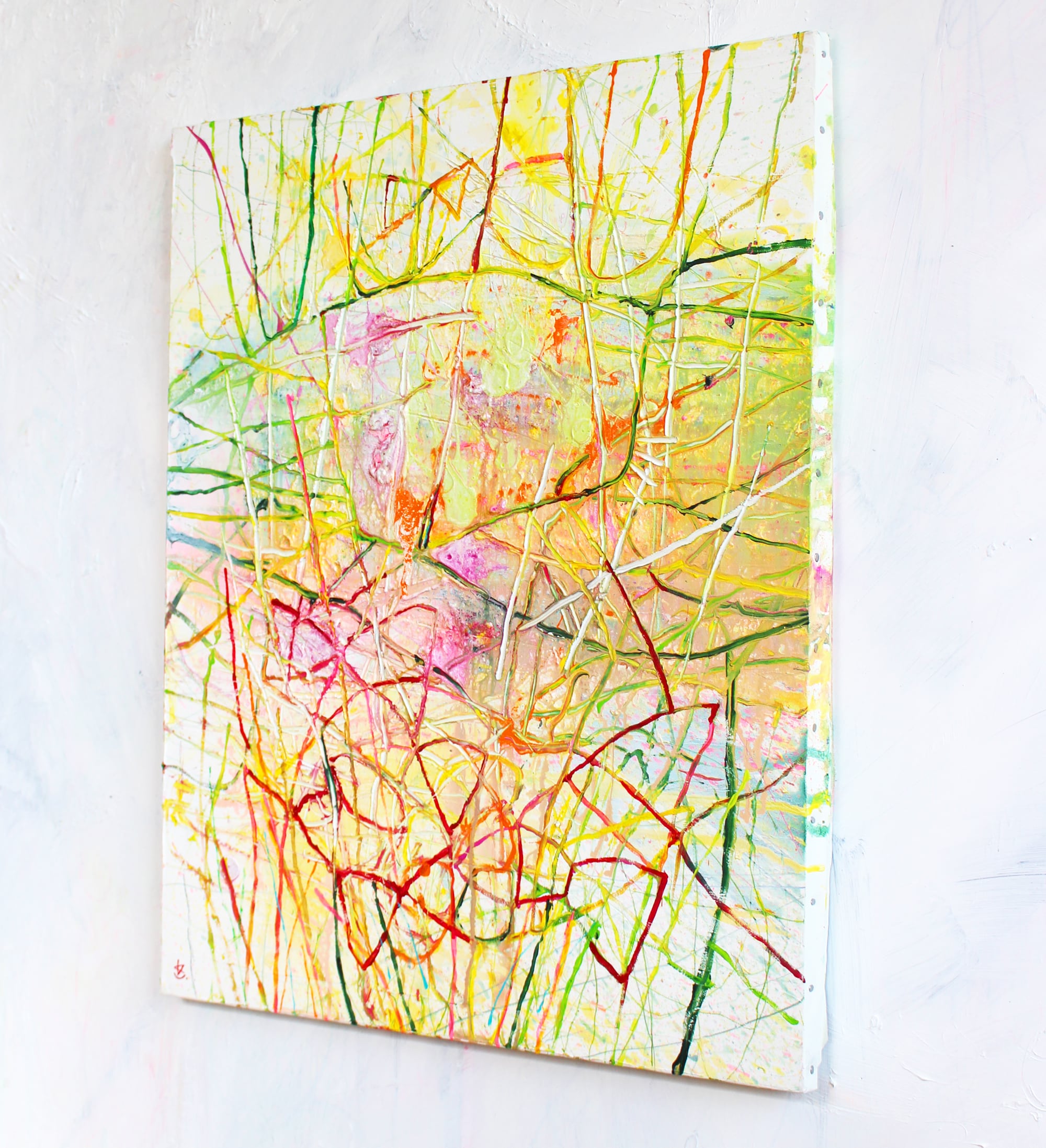 " All there are the ribbons I've made " . *A rabbit and ribbons . /acrylic,oilpastel,colored pencil,canvas/72.7×60.6cm(F20)/2019 No frame . . 『 私が作ってきたリボンたち 』 . アクリル絵の具、オイルパステル、色鉛筆、キャンバス 72.7×60.6cm(F20) 2019年 . うさぎとリボンになっている作品。